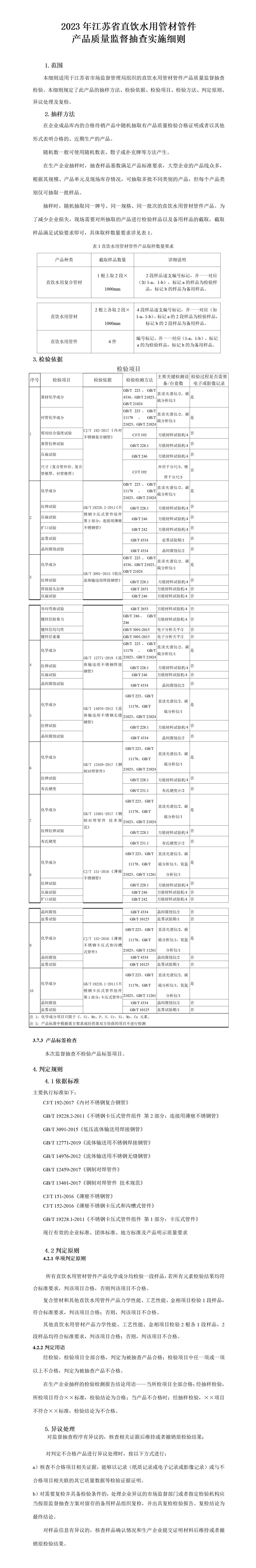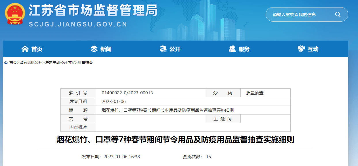 中国质量新闻网讯 2023年1月6日,江苏省市场监督管理局网站公布2023年江苏省直饮水用管材管件产品质量监督抽查实施细则。