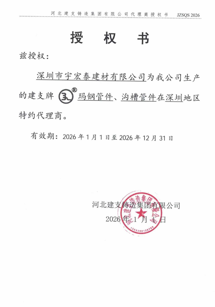 深圳市宇宏泰建材有限公司持有的建支牌管件特约代理授权,其有效期明确至2026年12月31日,这种时效性管理本身体现了供应链的动态质量控制。对于工程项目采购而言,授权有效期的公开化为产品溯源提供了时间维度的验证坐标。